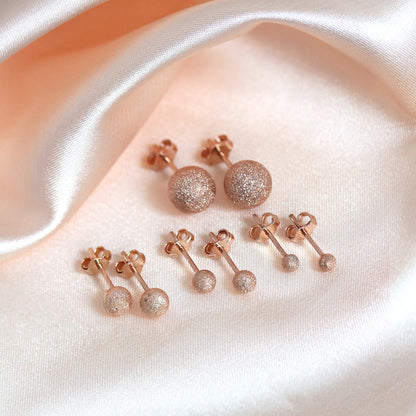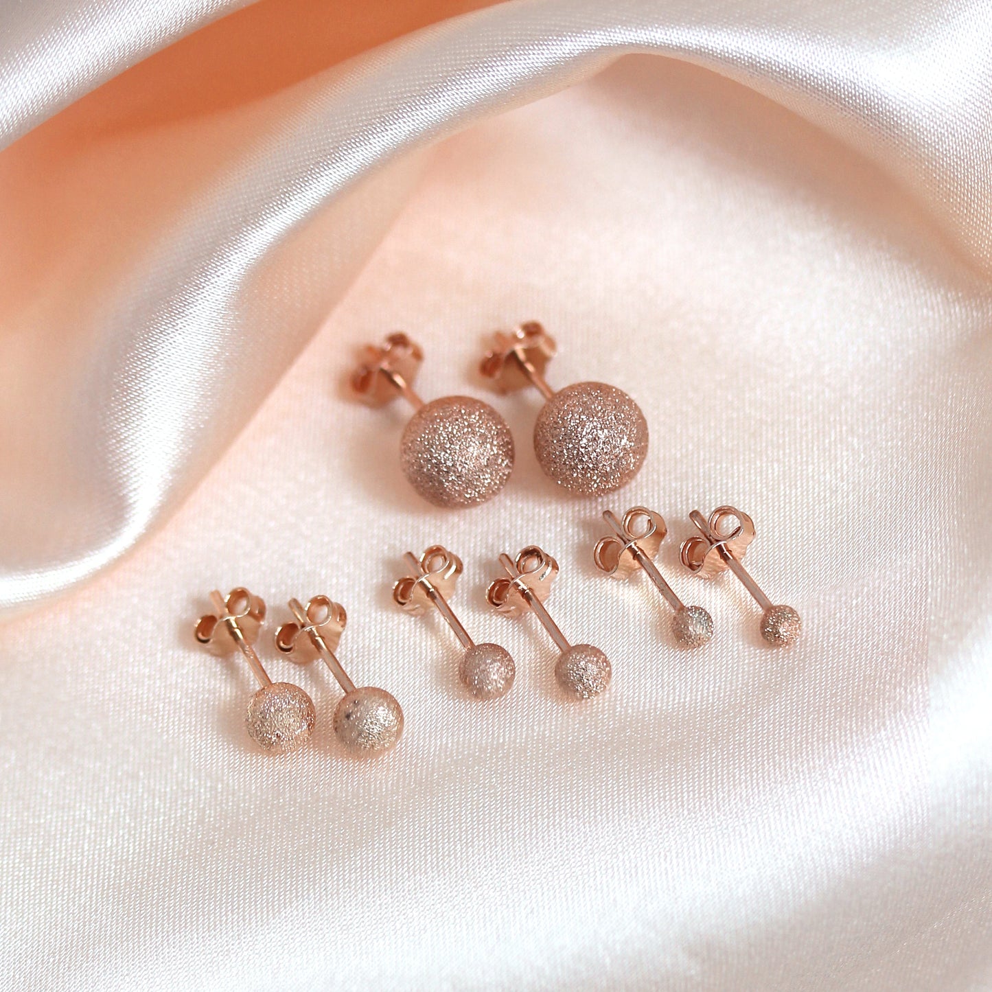 Rose Gold Plated Frosted Sterling Silver Ball Stud Earrings 3-8mm