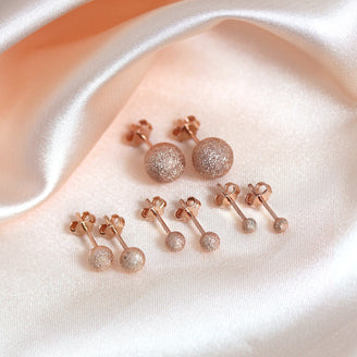 Rose Gold Plated Frosted Sterling Silver Ball Stud Earrings 3-8mm