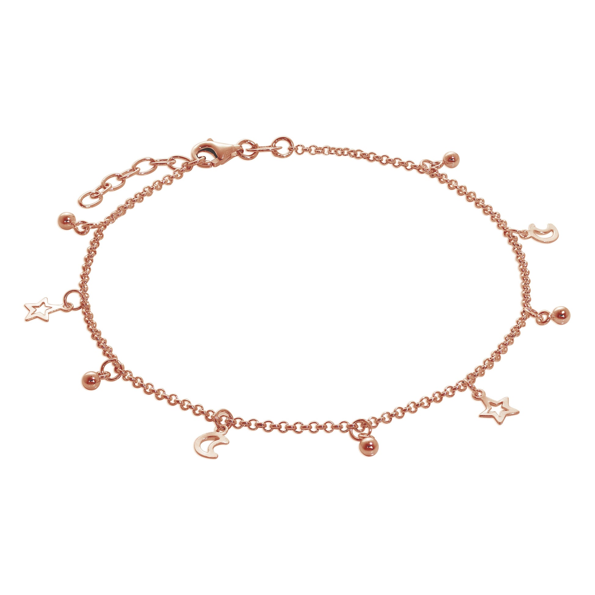 Rose Gold Plated Sterling Silver Moon & Star Ball Anklet
