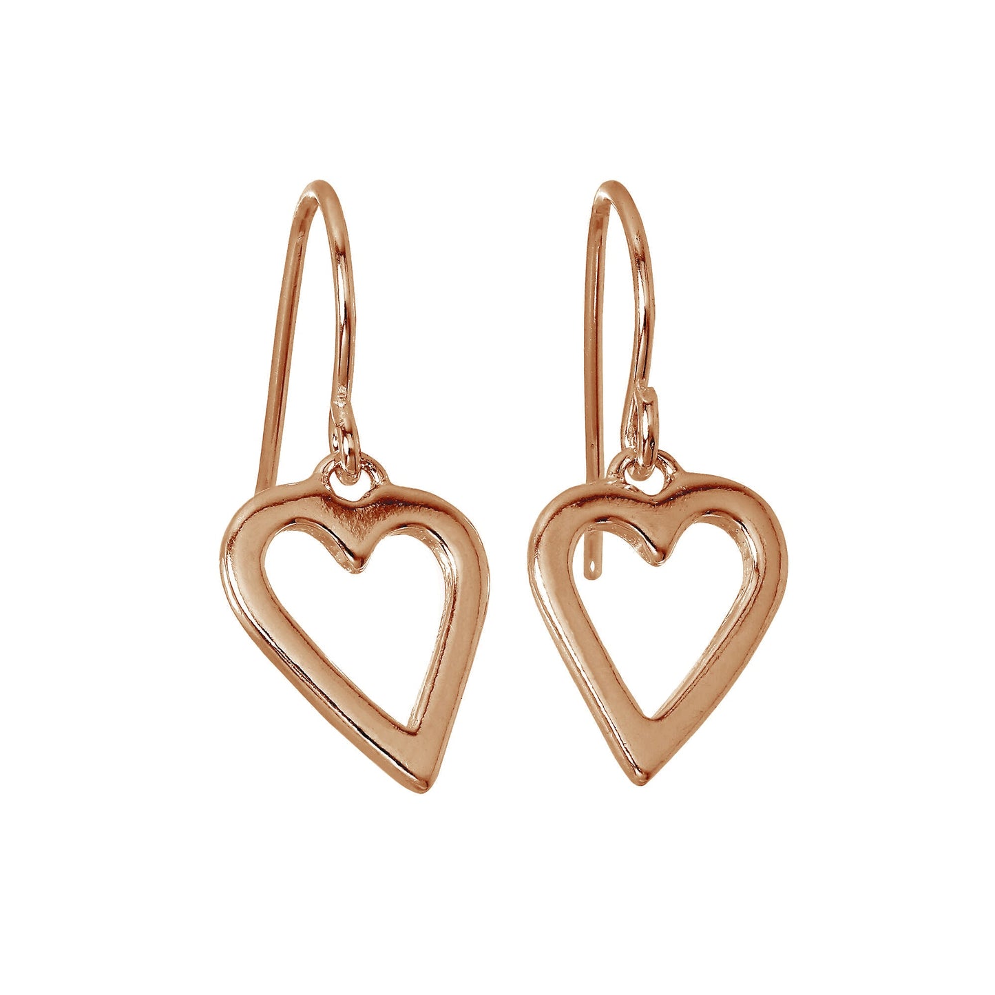 Rose Gold Plated Sterling Silver Open Heart Dangle Earrings