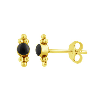 Small Gold Plated Sterling Silver Black Beaded Stud Earrings