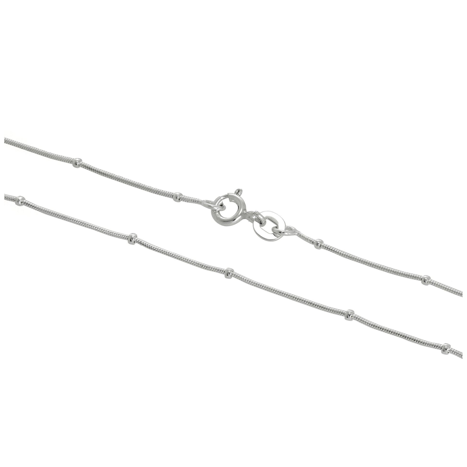 Sterling Silver 1mm Beaded Snake Chain 16 - 24 Inches