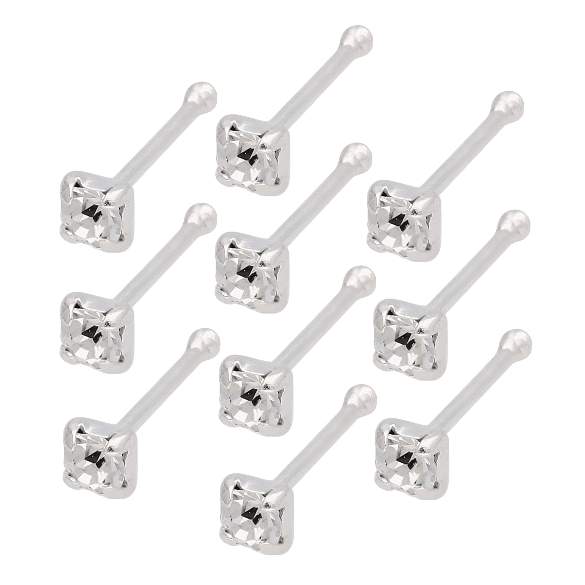 Sterling Silver 2mm CZ 22Ga Nose Stud Ball End Set of 10