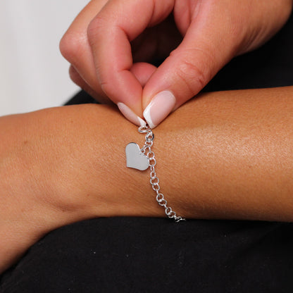 Sterling Silver 4mm Curb Cable Bracelet with Engravable Heart Charm 7 Inches