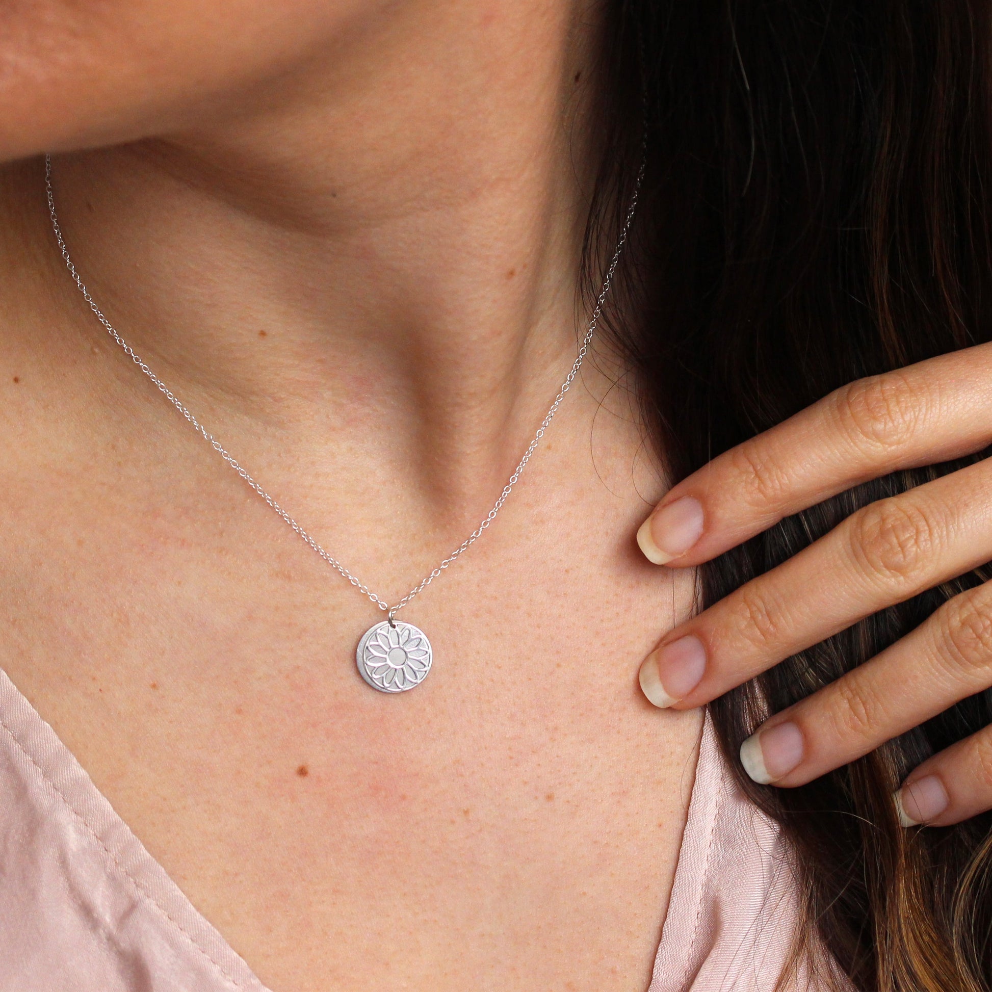 Sterling Silver April Daisy Birth Flower & 13mm Engravable Tag Necklace 14 - 22 Inches