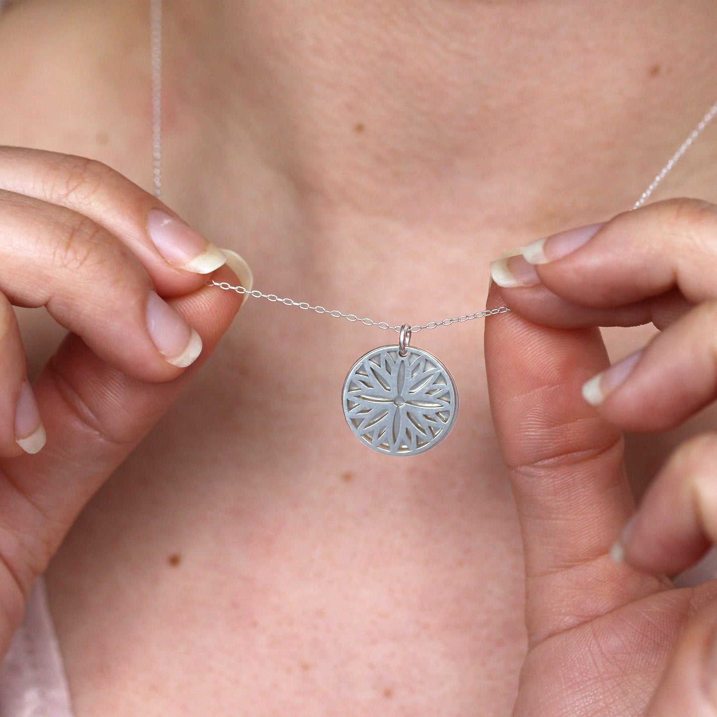 Sterling Silver Aster Flower & 18mm Tag Necklace 14-22 Inches