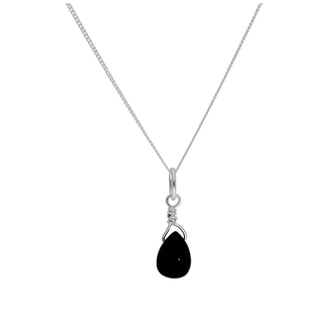 Sterling Silver Black Teardrop Crystal Bead Necklace - 14 - 32 Inches