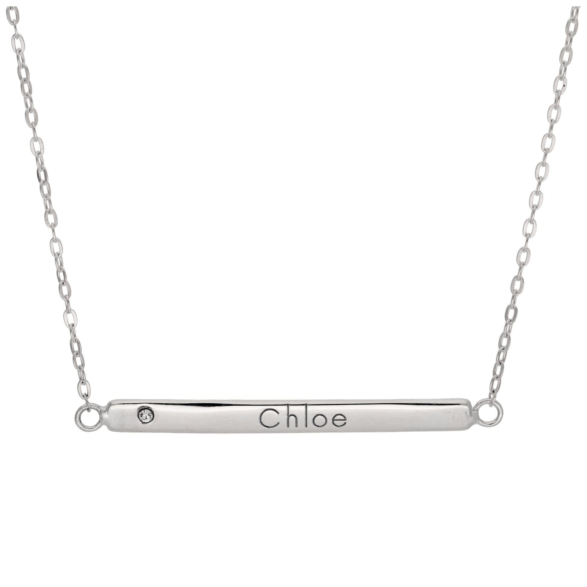 Sterling Silver Clear CZ Engravable Bar Necklace 18 Inch Chain