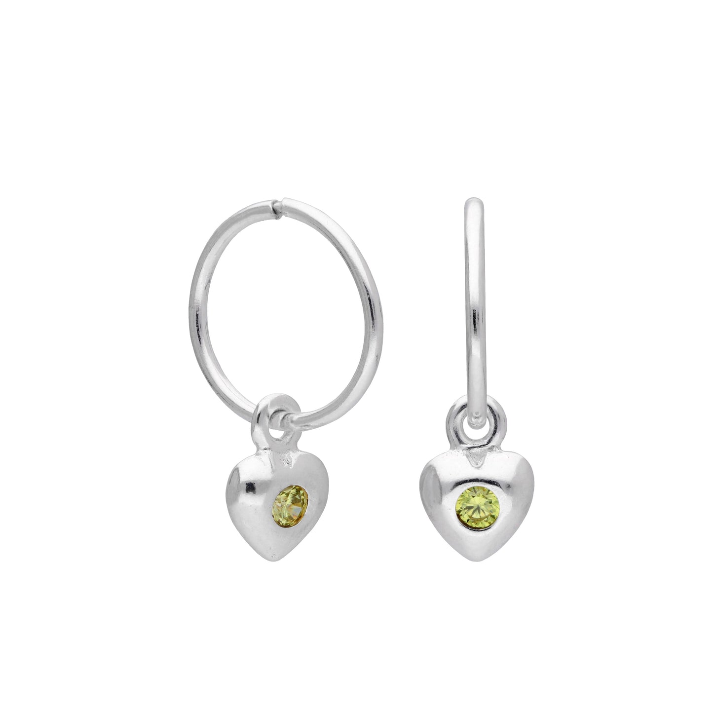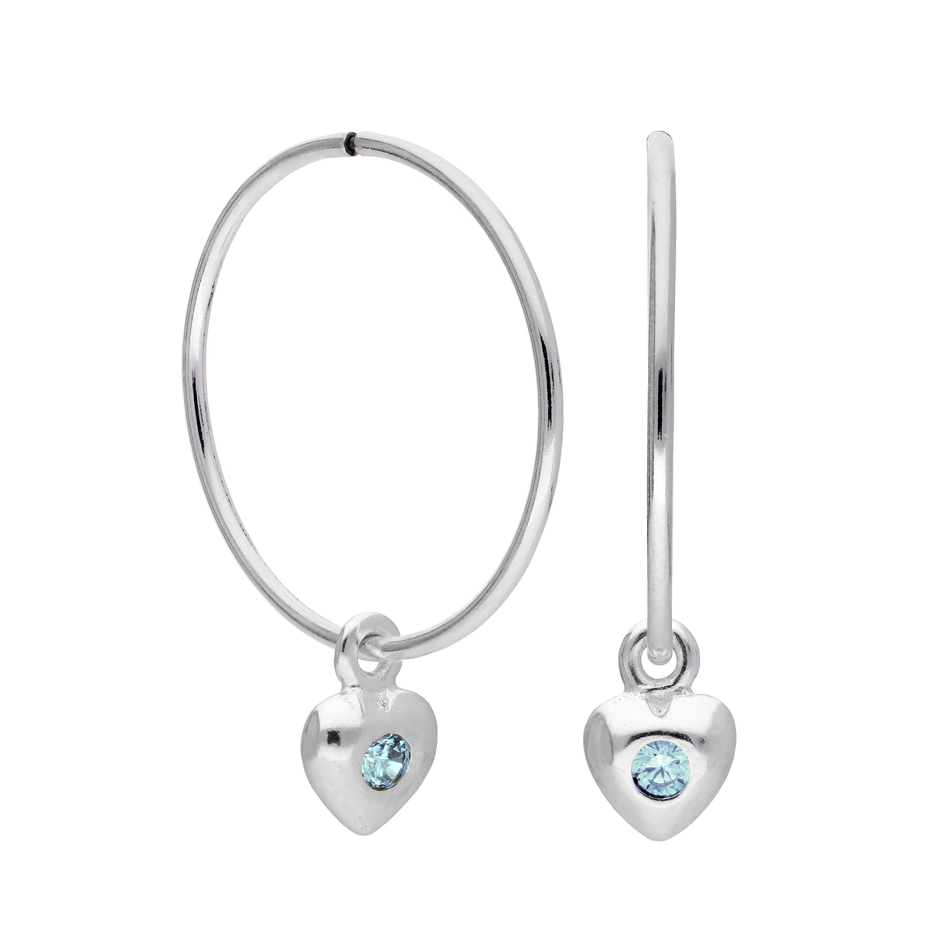 Sterling Silver CZ Crystal Birthstone Heart 10 - 22mm Sleeper Hoop Earrings