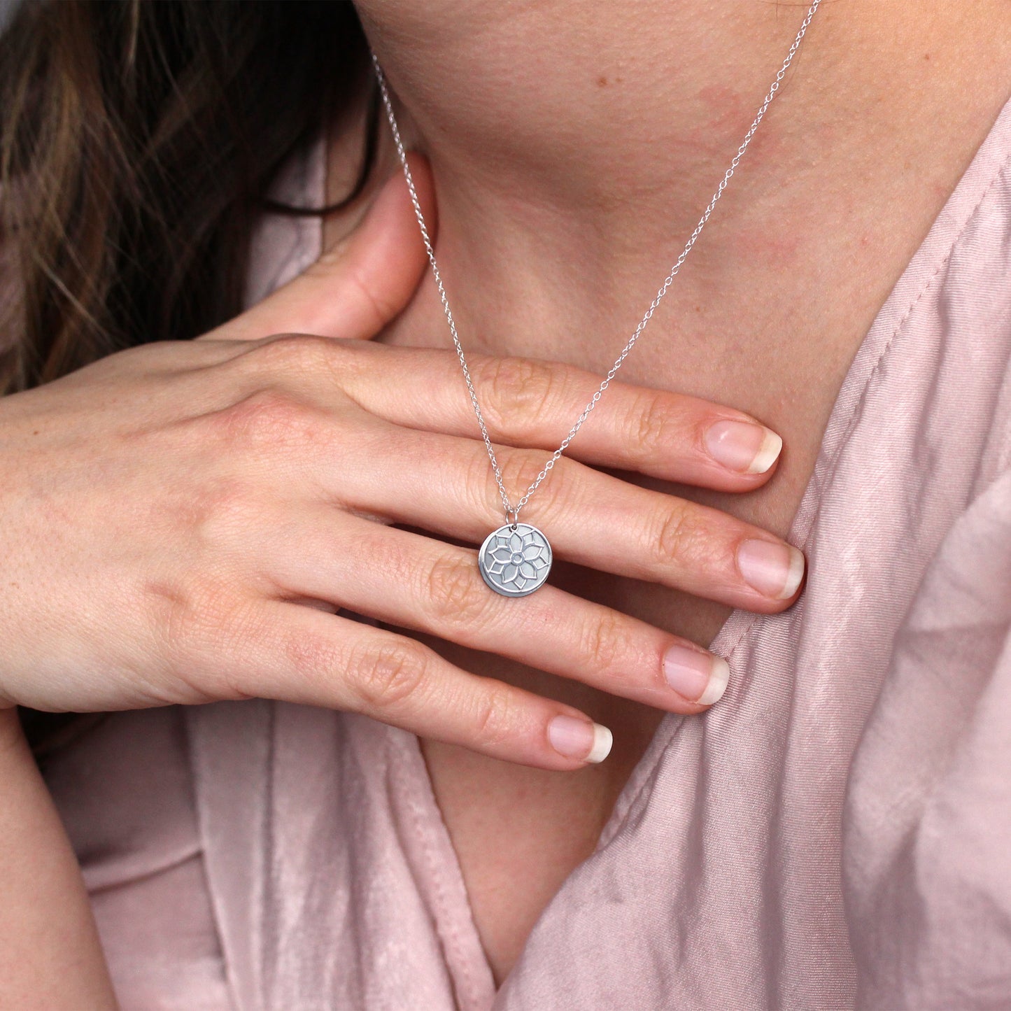 Sterling Silver December Poinsettia Birth Flower & 13mm Engravable Tag Necklace 14 - 22 Inches