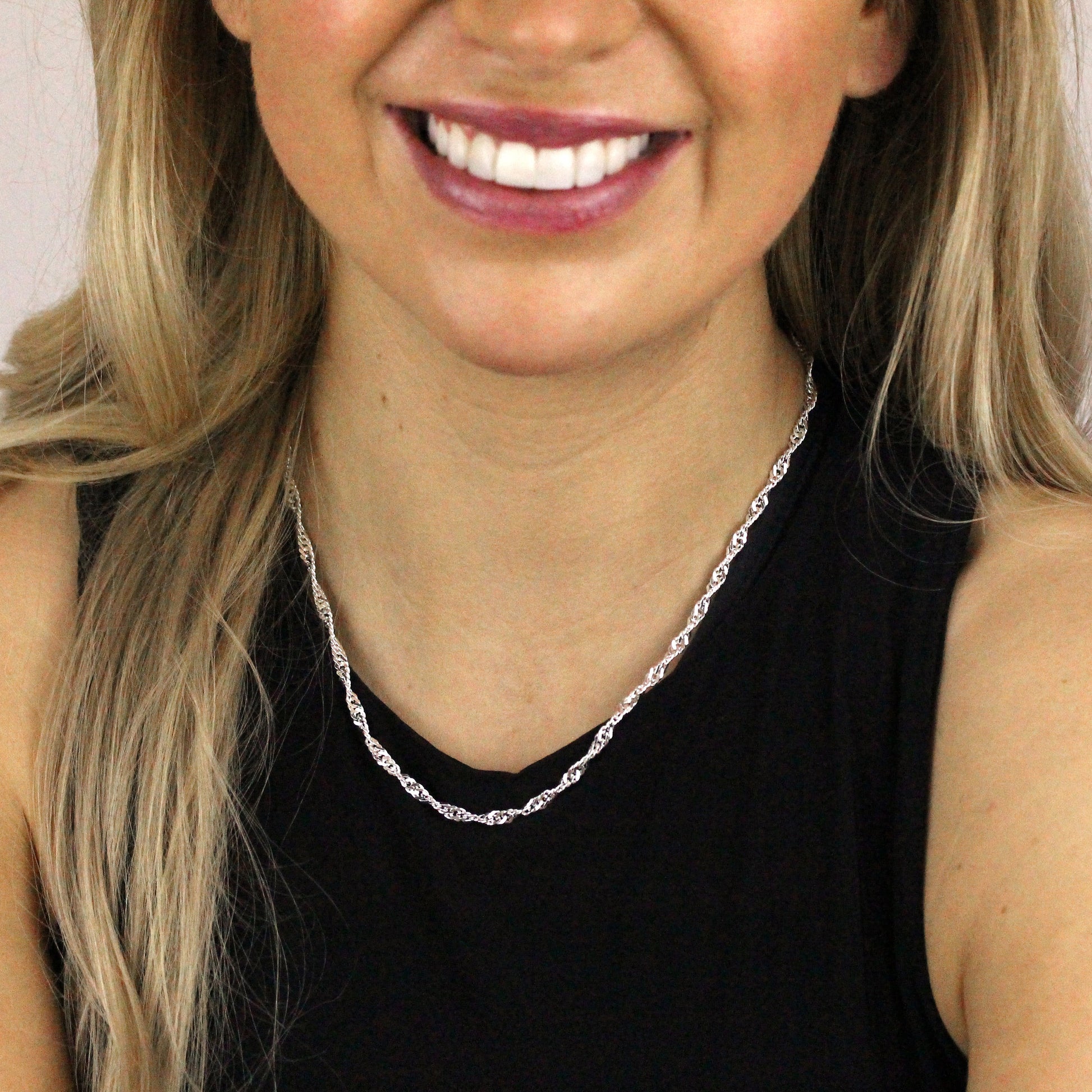 Sterling Silver Disco Snake Twist Chain Necklace 18 Inches