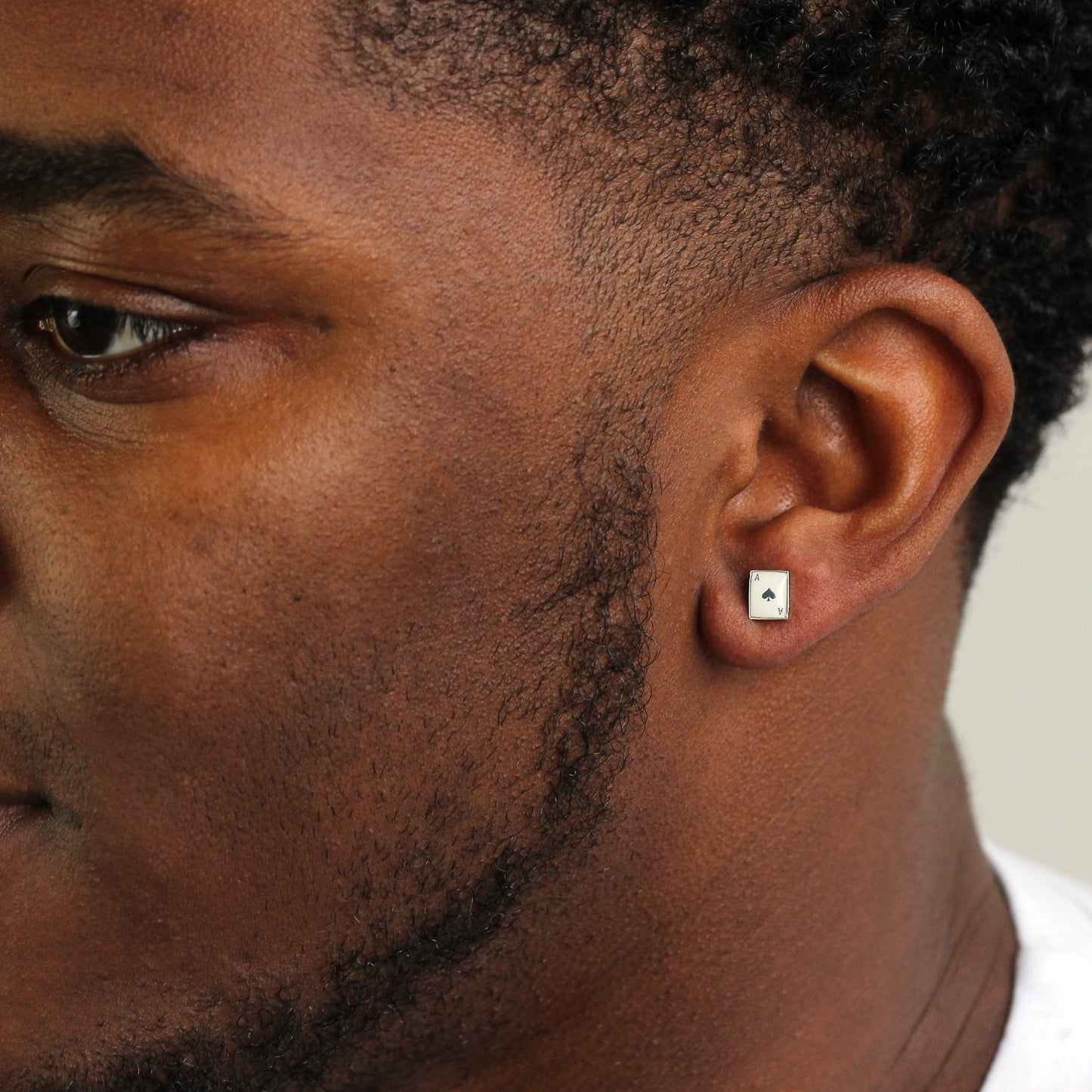 Sterling Silver Domed Ace of Spades Mens Single Ear Stud Earring