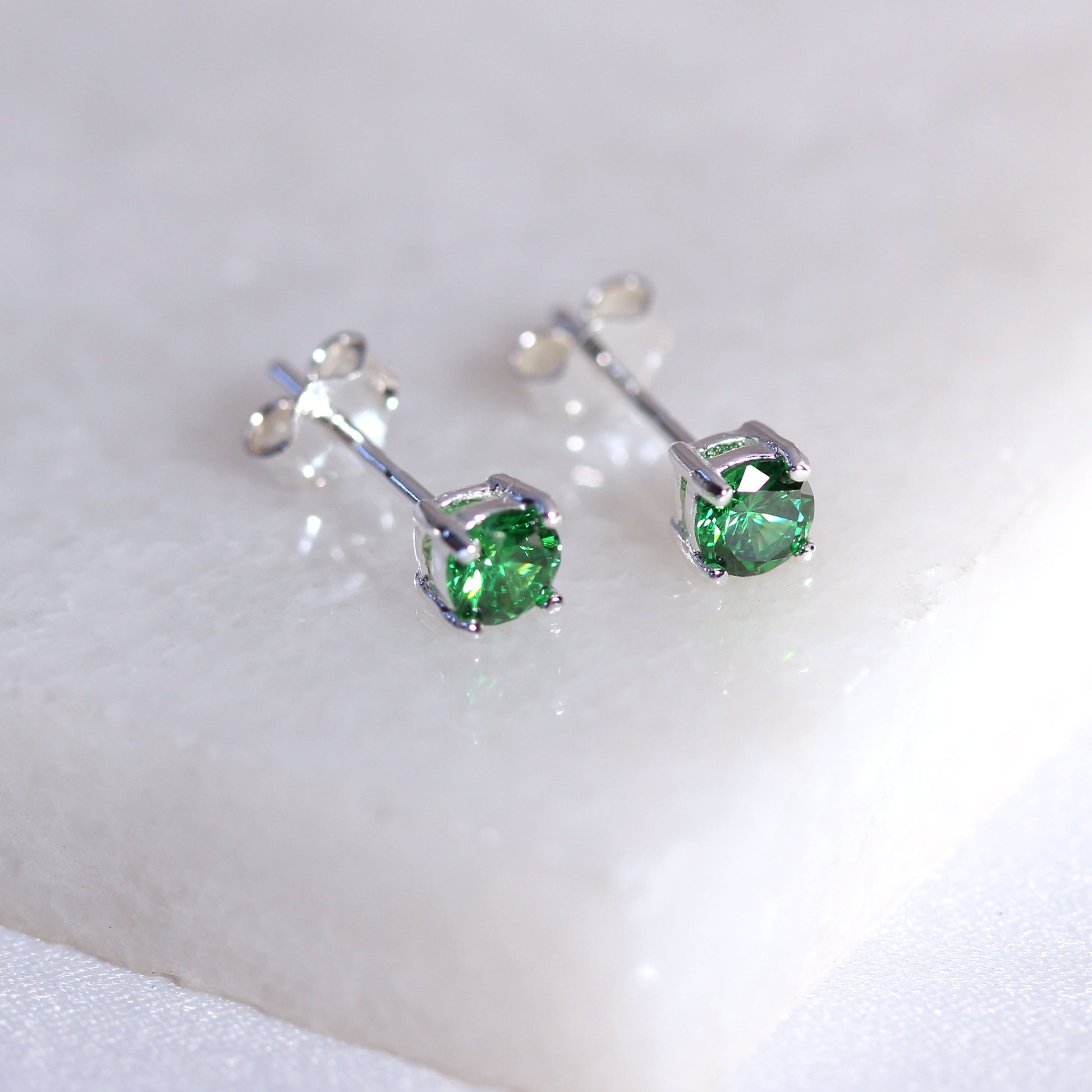 Sterling Silver Emerald CZ May Birthstone 4mm Stud Earrings