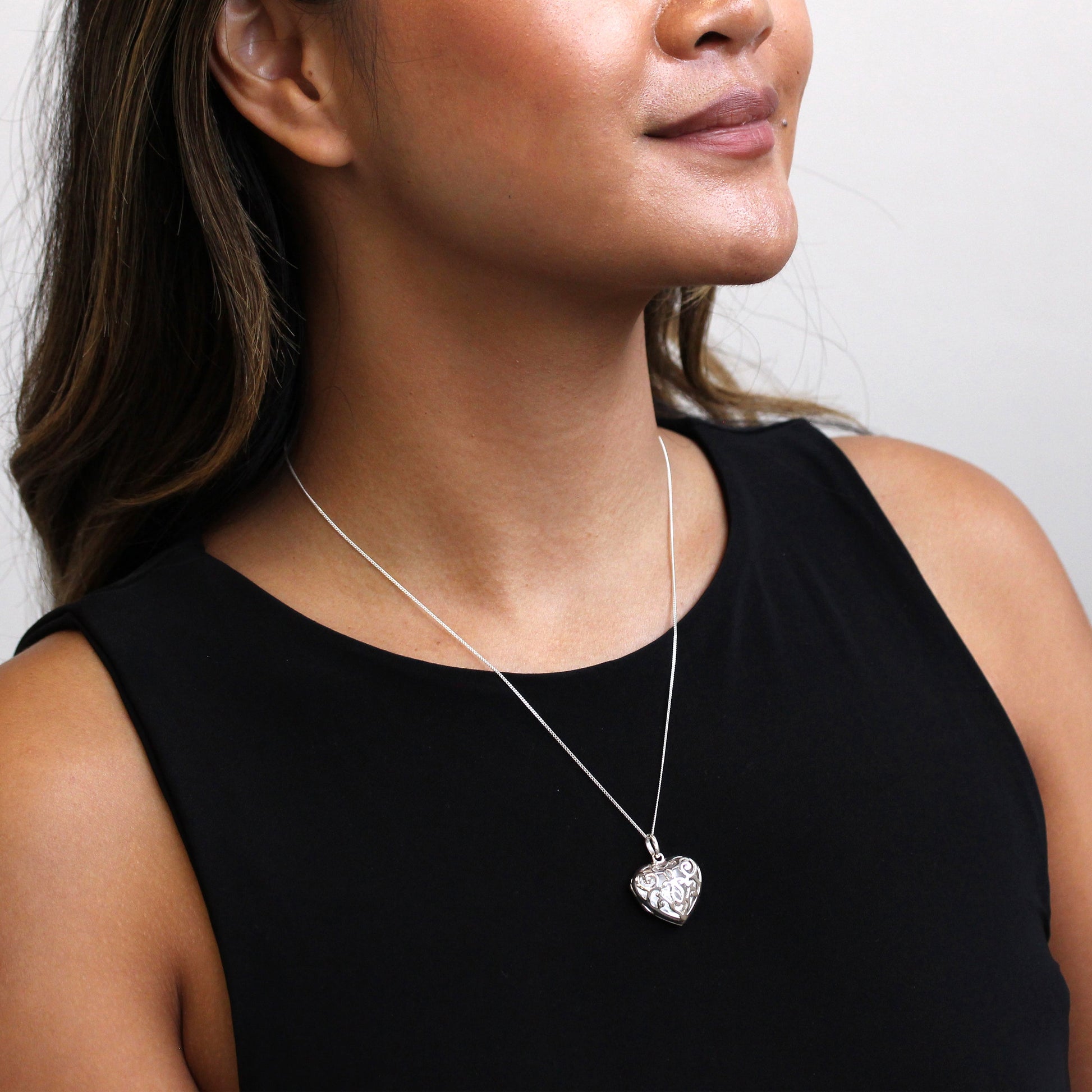 Sterling Silver Engravable Heart Locket w Open Swirls Design 16 - 22 Inches