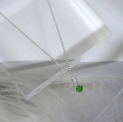 Sterling Silver & Green Crystal Bead Necklace - 14 - 22 Inches
