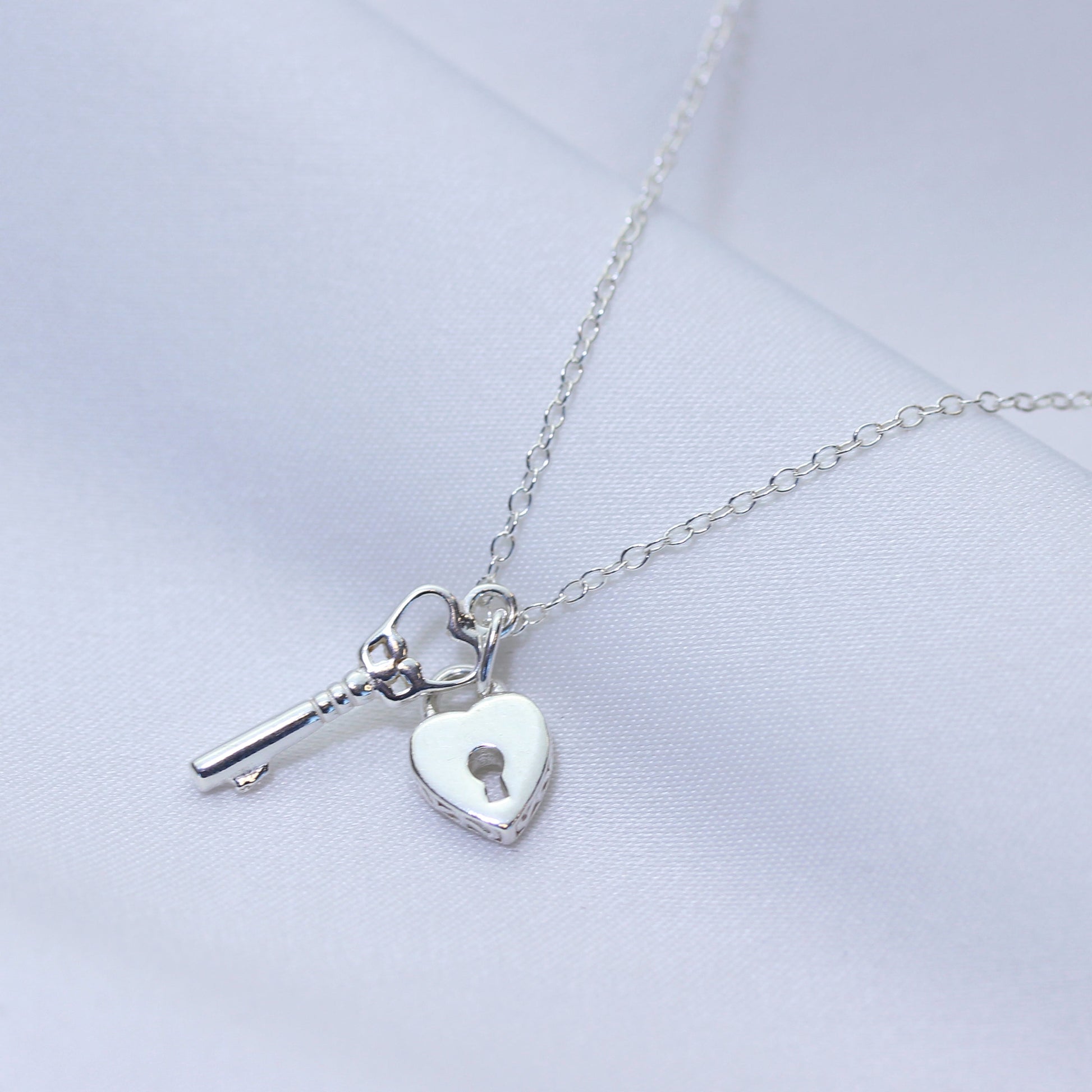 Sterling Silver Heart Padlock Key Necklace 14-22 Inches