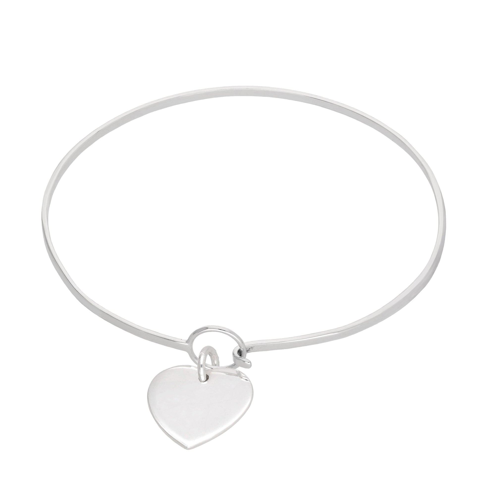 Sterling Silver Hook & Eye Bangle with Engravable Heart Charm