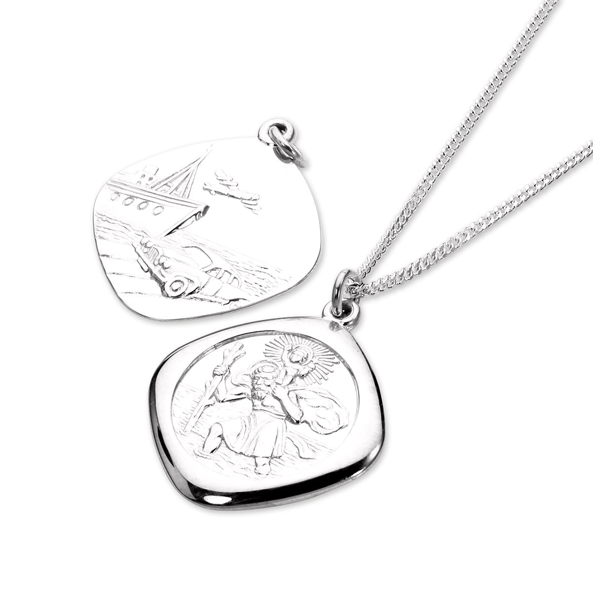This sterling silver large reversible square Saint Christopher pendant is the perfect gift to wish your loved one a safe journey as they embark on their travels. The Catholic patron saint of travellers, it is thought to bring the wearer luck. With jump ring attachment, this pendant can be added to a necklace and worn throughout their journey. It weighs 5.2 grams and measures 2.2 x 2.5 x 2.8cm. For more choice of Saint Christopher pendants, check out the full range.
