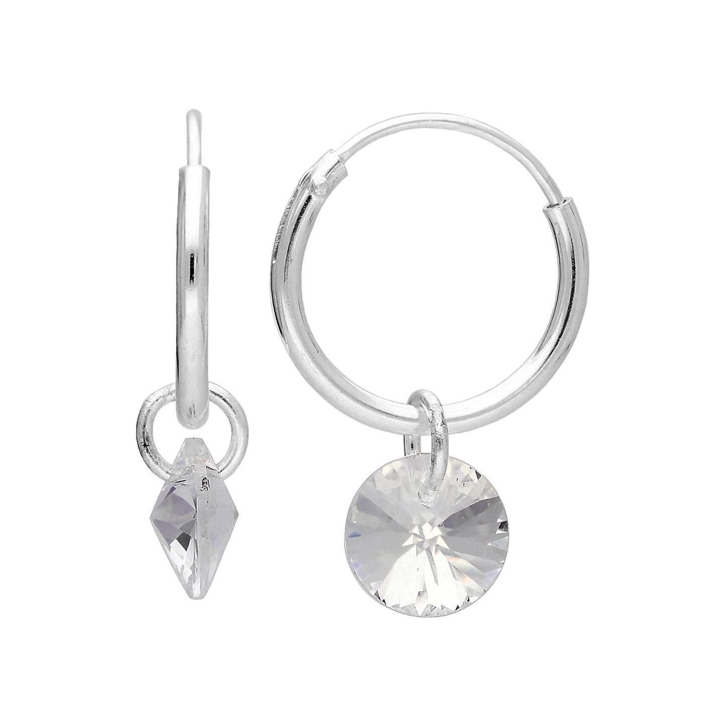 Sterling Silver Made with Swarovski Elements Charm Hoop Earrings