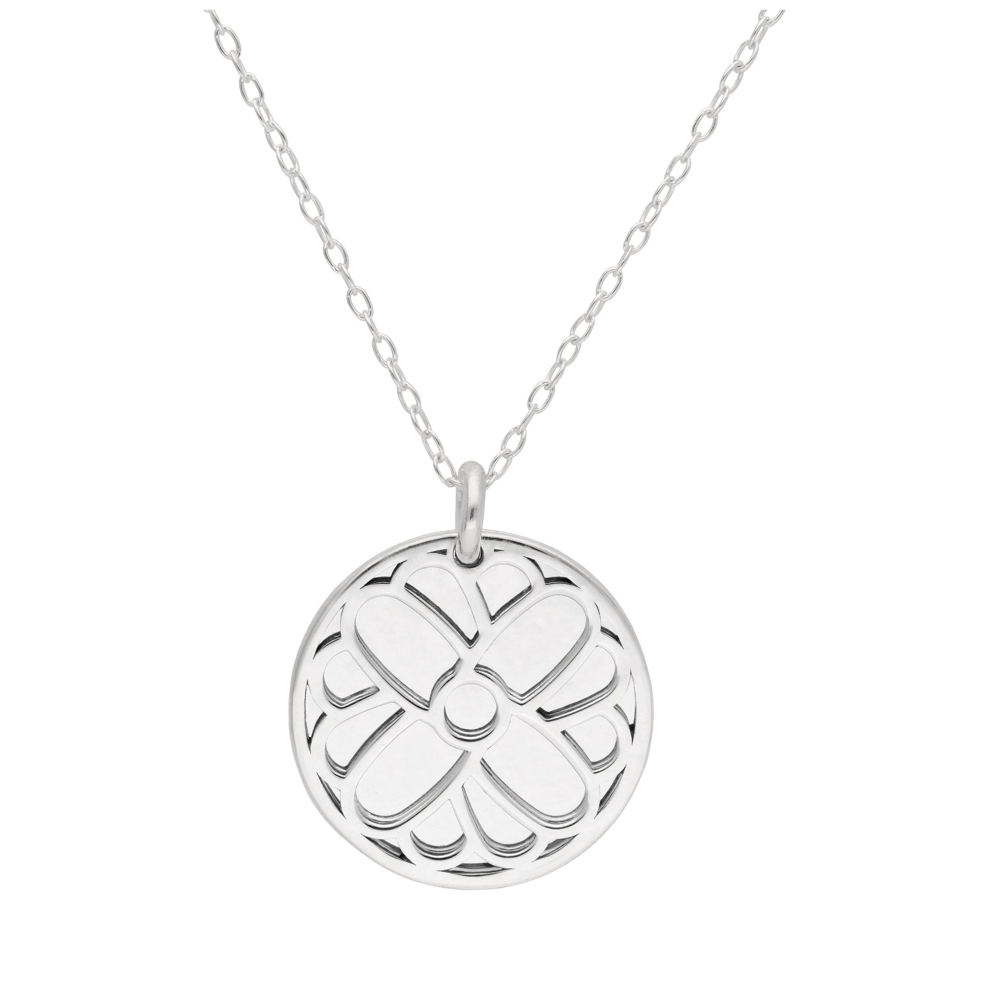 Sterling Silver Marigold Flower & 18mm Tag Necklace 14-22 Inches