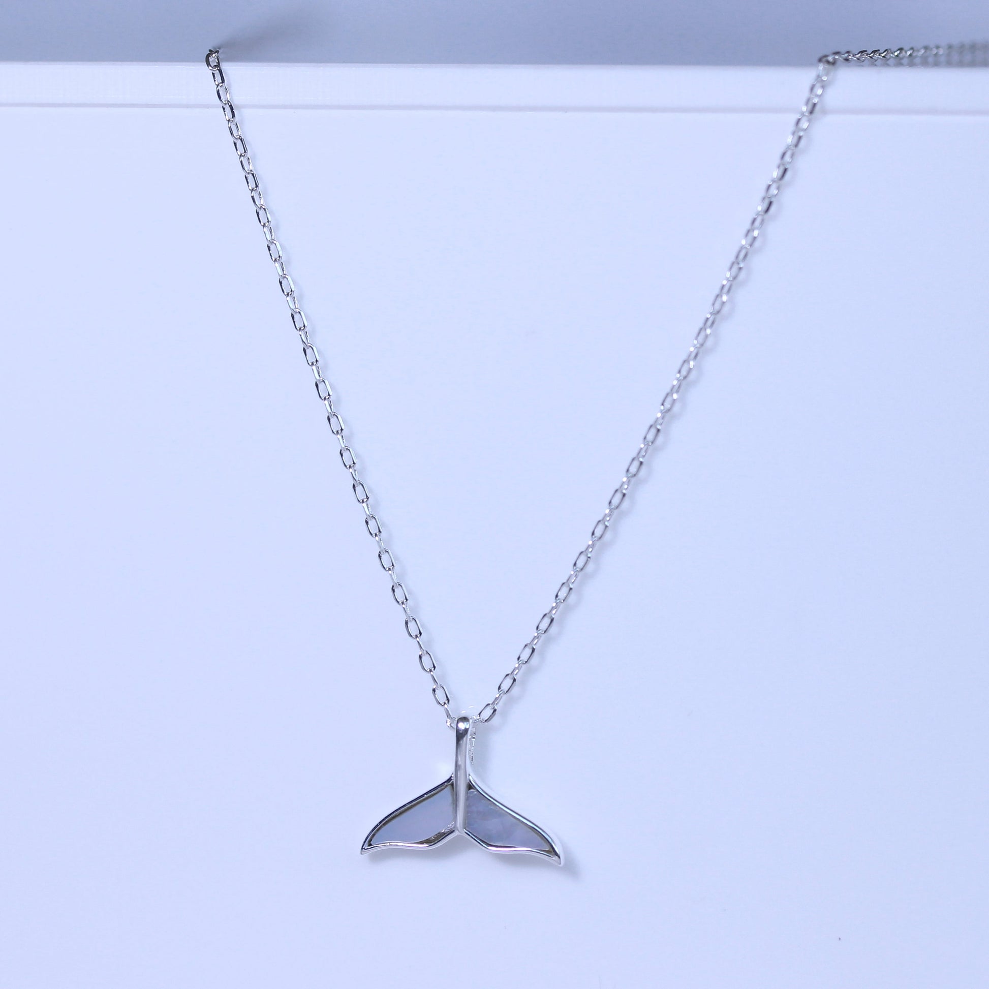 Sterling Silver Mother of Pearl Whale Tail Necklace 18 Inch