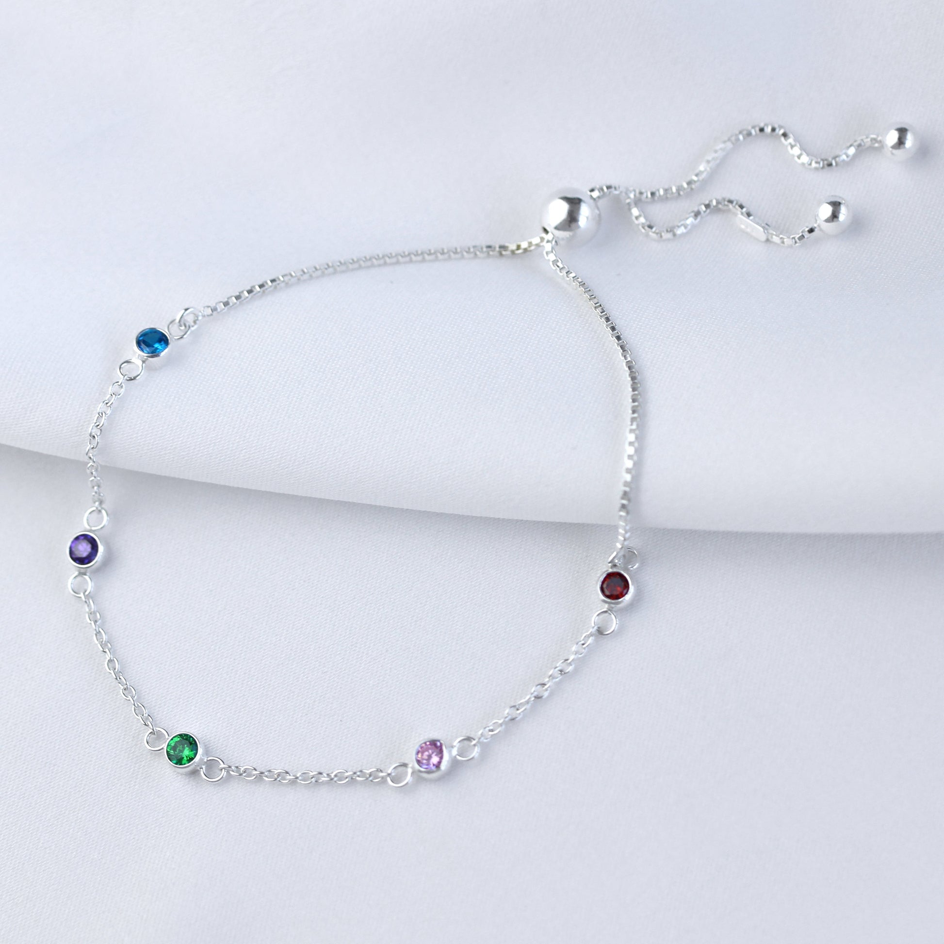 Sterling Silver Multi Rainbow CZ Adjustable Bracelet