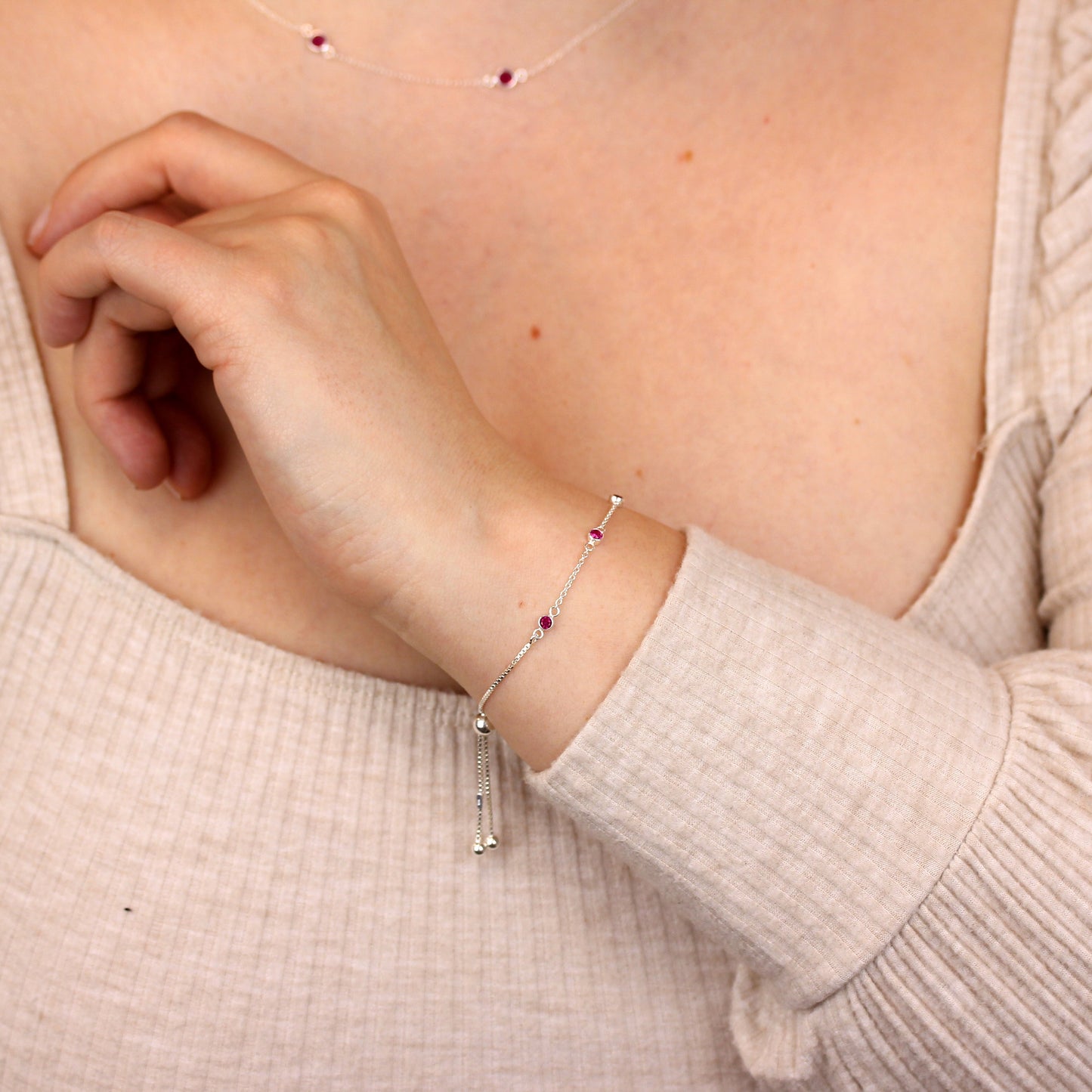 Sterling Silver Multi Ruby CZ Adjustable Bracelet