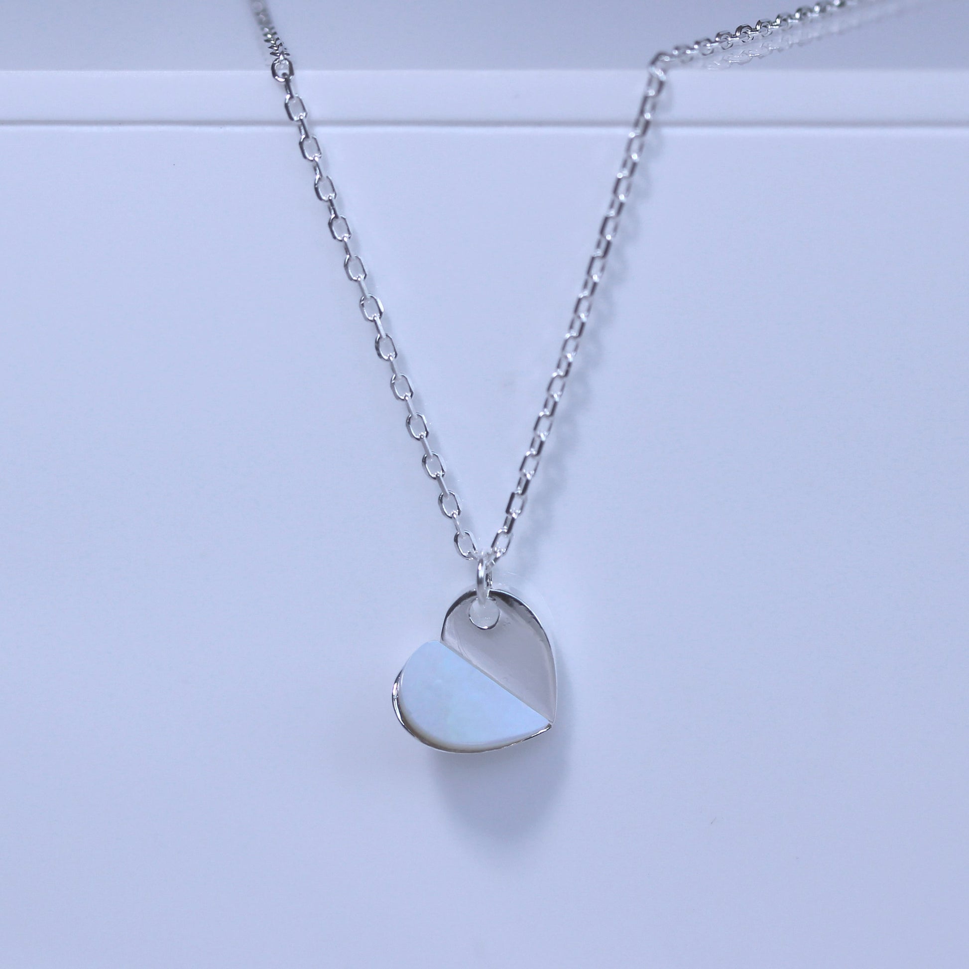 Sterling Silver Split Mother of Pearl Heart Necklace 18 Inch