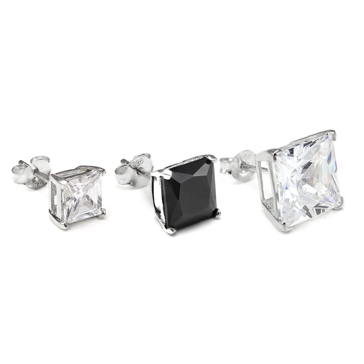 Sterling Silver Square CZ Crystal Mens Single Ear Stud - 4 -10mm