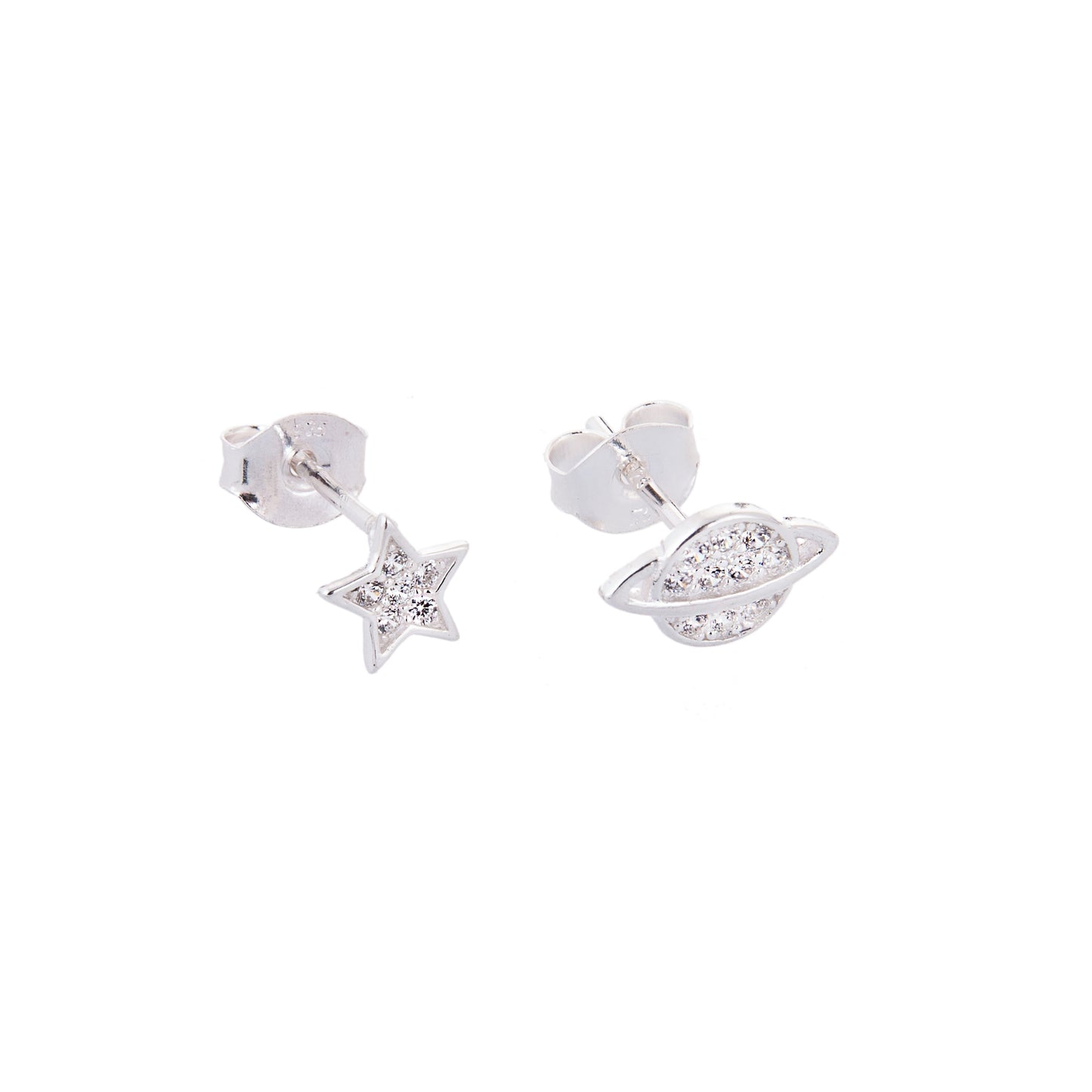 Sterling Silver Star Planet Mix & Match Clear CZ Pave Stud Earrings