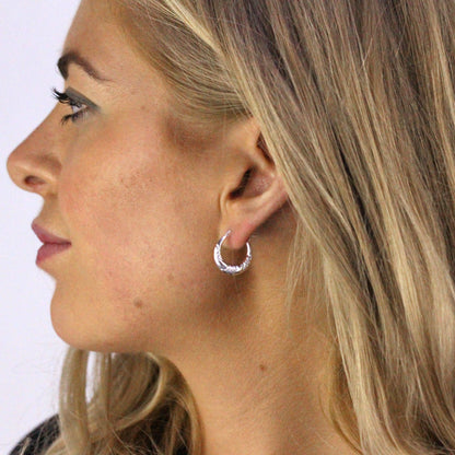Sterling Silver Textured Twisted Creole 18mm Hoop Earrings