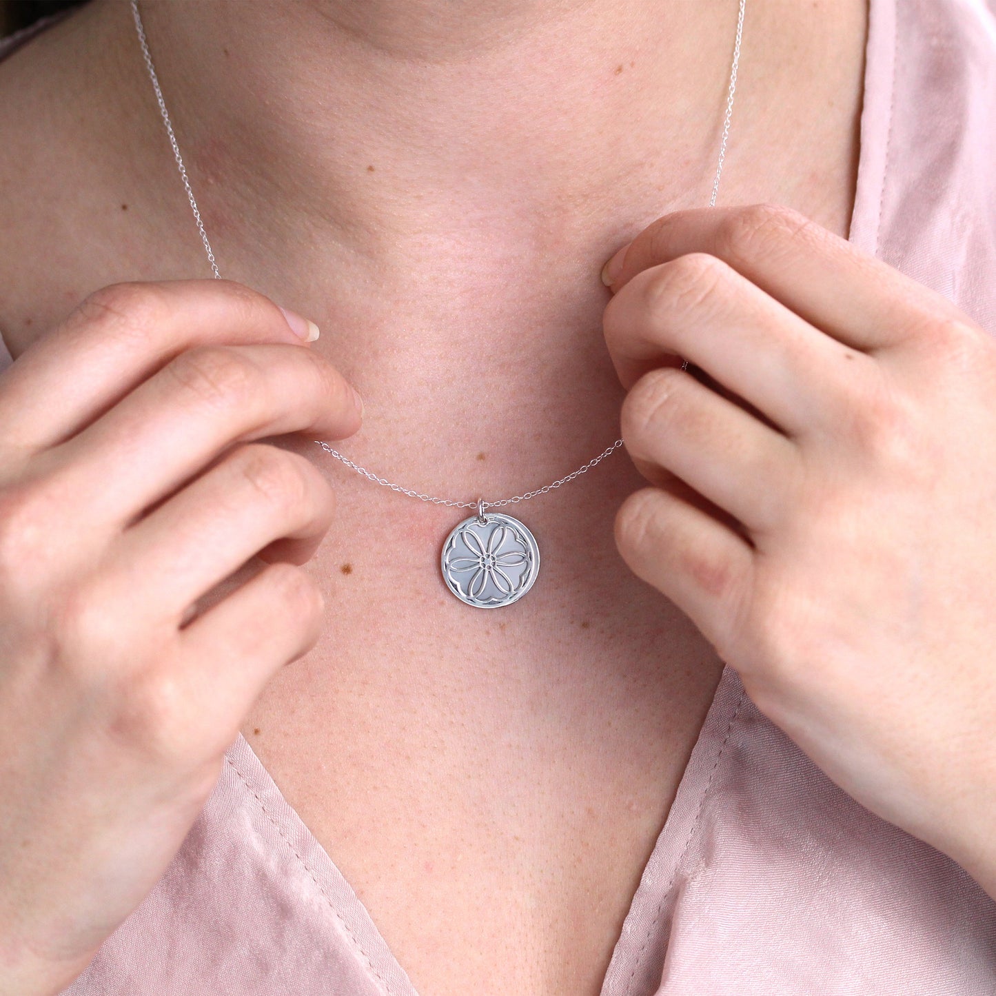 Sterling Silver Violet Flower & 18mm Tag Necklace 14-22 Inches